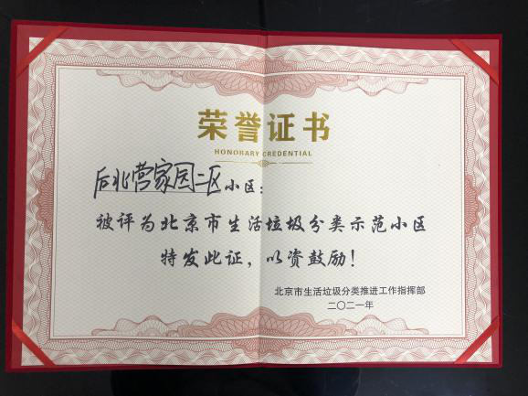 喜訊!北投運(yùn)營公司所屬博識物業(yè)公司服務(wù)的后北營家園二區(qū)榮獲“北京市生活垃圾分類示范小區(qū)”稱號