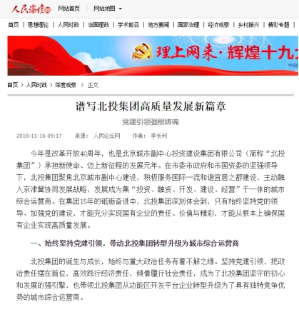 “改革開放40年北京國企黨建實踐與創(chuàng)新之路”專欄今日刊發(fā)北投集團 黨委書記、董事長李長利署名文章