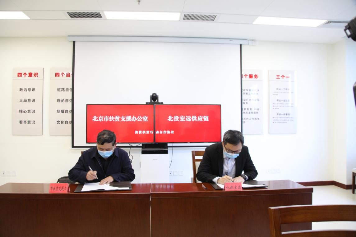 近日,北投集團所屬宏遠(yuǎn)供應(yīng)鏈公司與北京市扶貧支援辦簽署《消費扶貧行動合作協(xié)議》。這是北京市政府助力受援地區(qū)扶貧產(chǎn)品銷售,促進(jìn)建檔立卡貧困戶增收脫貧的重要舉措,也是北投宏遠(yuǎn)供應(yīng)鏈公司響應(yīng)政府號召,履行企業(yè)責(zé)任,助力打贏脫貧攻堅戰(zhàn)的重要行動。