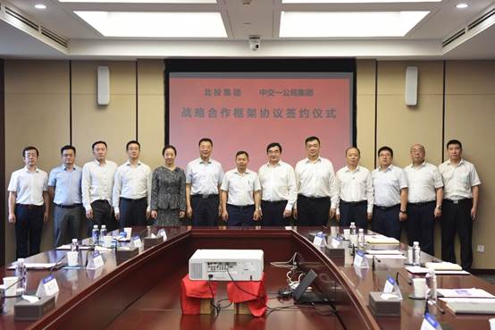 北投集團黨委委員、董事、總會計師孫洪山,副總經(jīng)理吳金梅;中交一公局集團黨委常委、副總經(jīng)理徐振偉,總經(jīng)理助理、市場管理部總經(jīng)理周越文等出席簽約儀式。