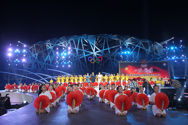 由國家體育總局和北京市政府主辦,北京電視臺承辦的“一路拼搏——慶祝中國奧運(yùn)代表團(tuán)凱旋主題晚會”于2012年9月3日晚在北京奧林匹公園中心區(qū)慶典廣場舉行。初秋的慶典廣場星光璀璨、明星云集,剛剛在第30屆倫敦夏季奧運(yùn)會上載譽(yù)而歸的林丹、易思玲、曹緣、陳一冰、張成龍、趙云蕾, 陳定、鄒市明、雷聲、李娜、蔡赟、傅海峰、張楠等13名奧運(yùn)冠軍集體亮相,不僅現(xiàn)場用精彩的才藝表演展現(xiàn)了奧運(yùn)冠軍的多才多藝,還講述了他們拼搏背后的成長故事,表達(dá)了對祖國和人民的感激之情。同時,成龍、譚晶、戴玉強(qiáng)、莫華倫、羽泉、朗朗、胡彥斌、齊秦、薩頂頂、李宇春、林妙可等演藝界明星鼎力助陣,用精彩的文藝演出為奧運(yùn)冠軍慶功。