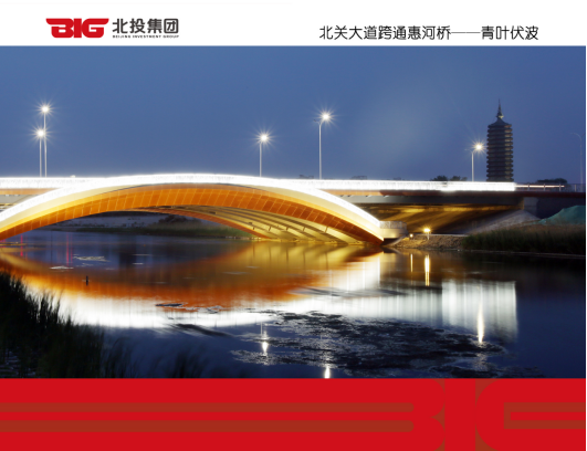 距離通州古建三教廟—燃燈塔不遠處,北關大道跨通惠河的單拱全鋼景觀大橋“青葉伏波”已正式亮相。該橋長90米,寬45米到51米,整個景觀大橋共安裝大小34塊橋面鋼梁。