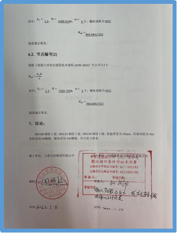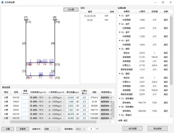 (6)支吊架驗(yàn)算:借助BIM軟件結(jié)合支吊架的安裝方案,進(jìn)行支吊架數(shù)據(jù)安全性的驗(yàn)算,出具支吊架計(jì)算書(shū)并得到設(shè)計(jì)院復(fù)核的簽字認(rèn)可。